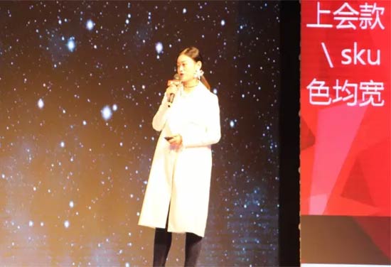 銷售商品總監 丁飛女士則在會上分享了訂貨會的商品組合、訂貨指引及17Q4季度品牌、零售的推廣資源